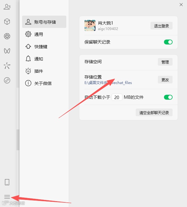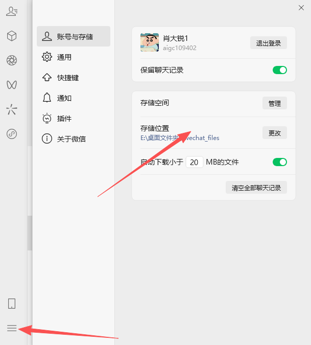 迁移完;我们可以更改微信聊天记录保存位置: