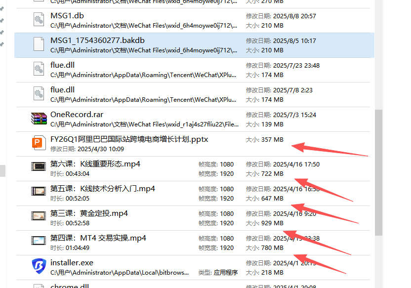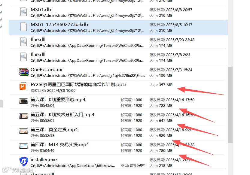 我这里之前微信聊天记录保存路径没设置好;导致还有很多内容在桌面。继续迁移。