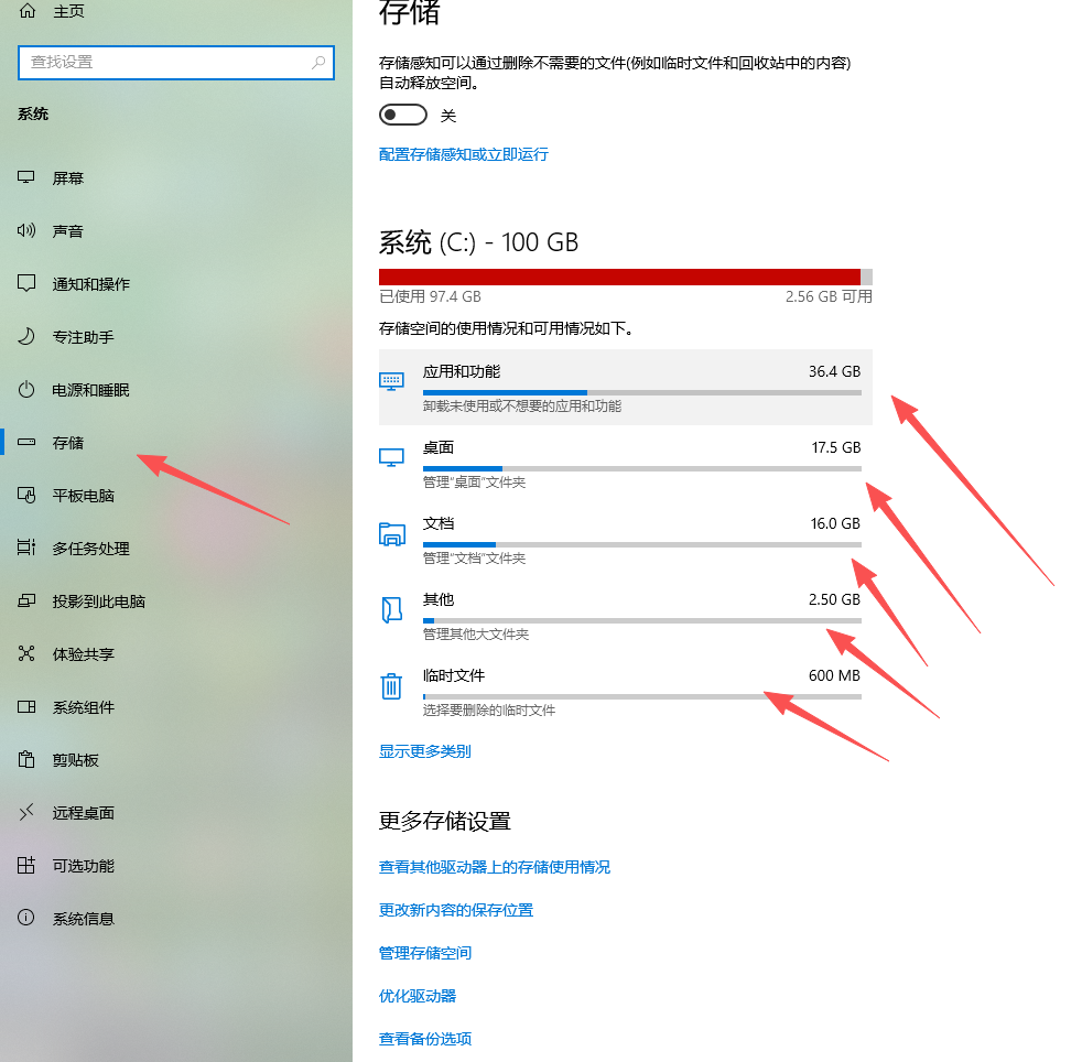 Win + I键,打开Windows设置。进入存储设置:点击“系统” -> “存储”。