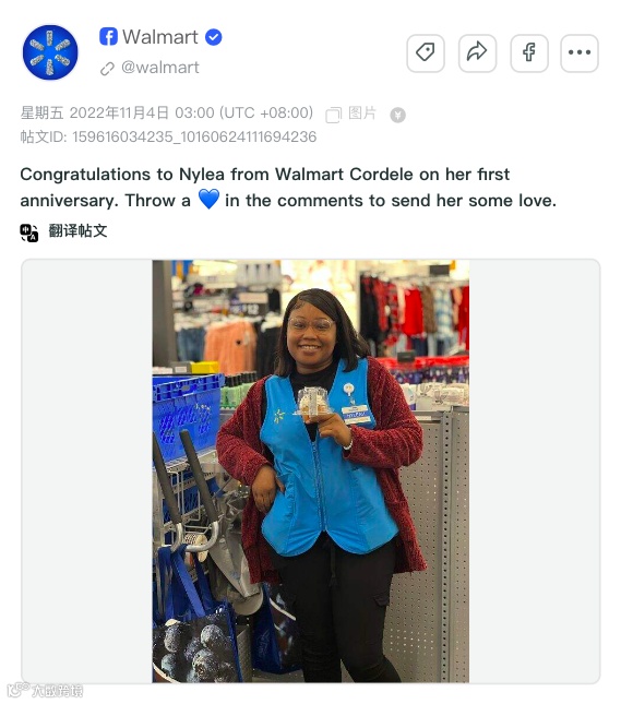除此之外,沃尔玛社媒平台的运营策略与新兴跨境电商最大的不同在于其重视对线下购物行为的融入。我们发现,本次大促期间沃尔玛的员工向内容获得较多互动,员工的正向积极情绪也能够鼓励用户进行线下购物。