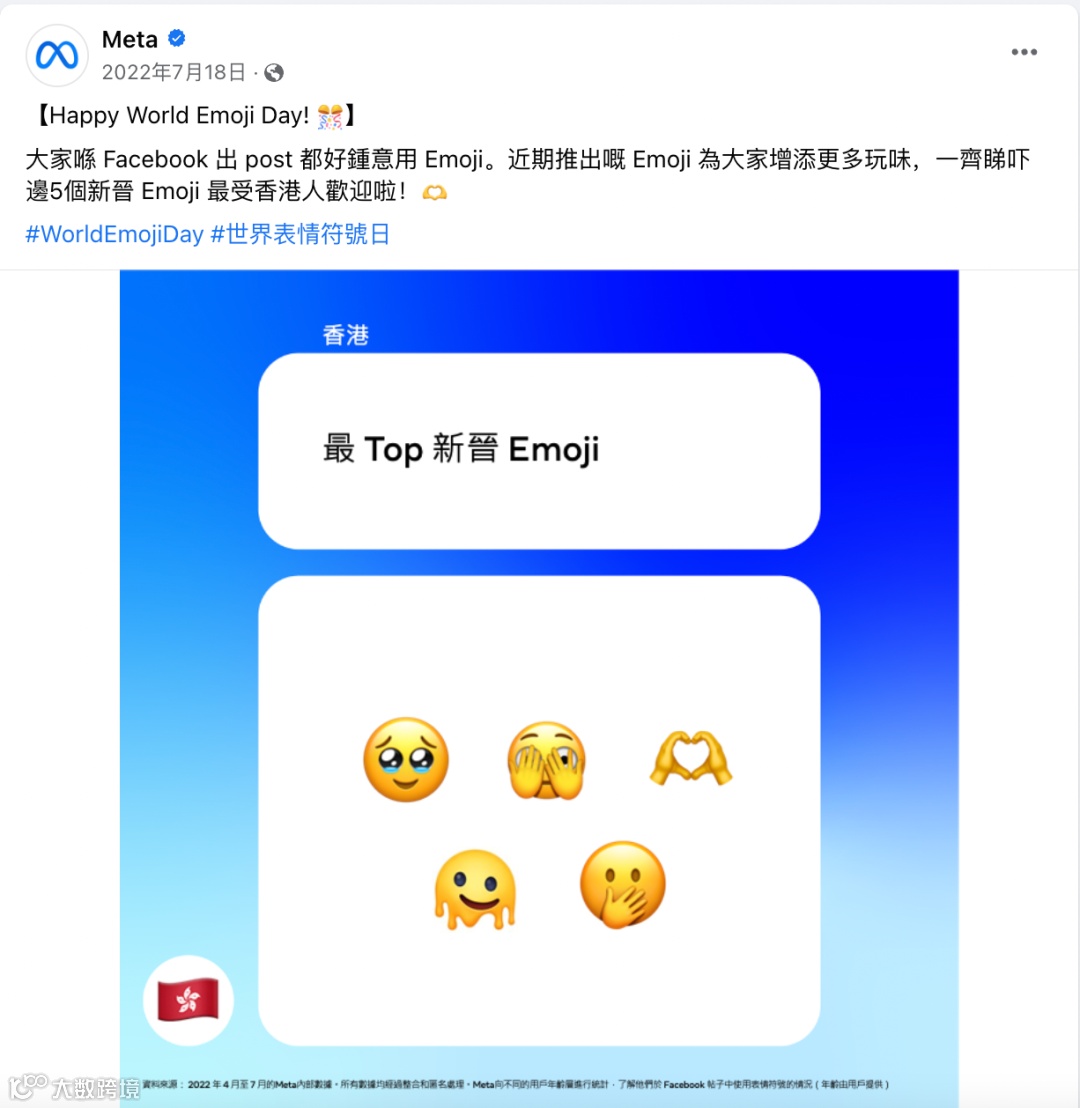 据统计,全球每日发送近100亿个Emoji。到2022年7月,位居Twitter十大爱用Emoji之首的是😂喜极而泣(Face with Tears of Joy),第二名为😭大哭(Loudly Crying Face),第三名则是🥺无辜恳求脸(Pleading Face)。第一名甚至曾在2015年,被牛津字典选为年度词汇。