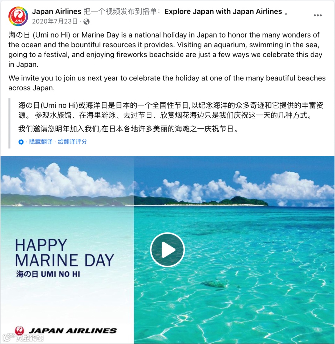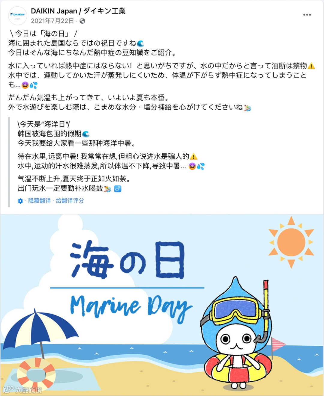日本是很多大品牌的目标市场之一,海外社媒上,他们多数会在海之日期间发布节日帖文,起到强化品牌和促销的作用: