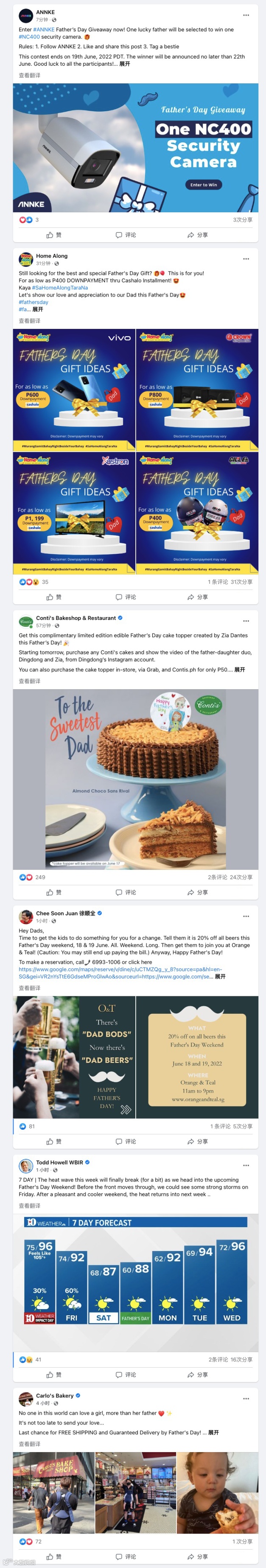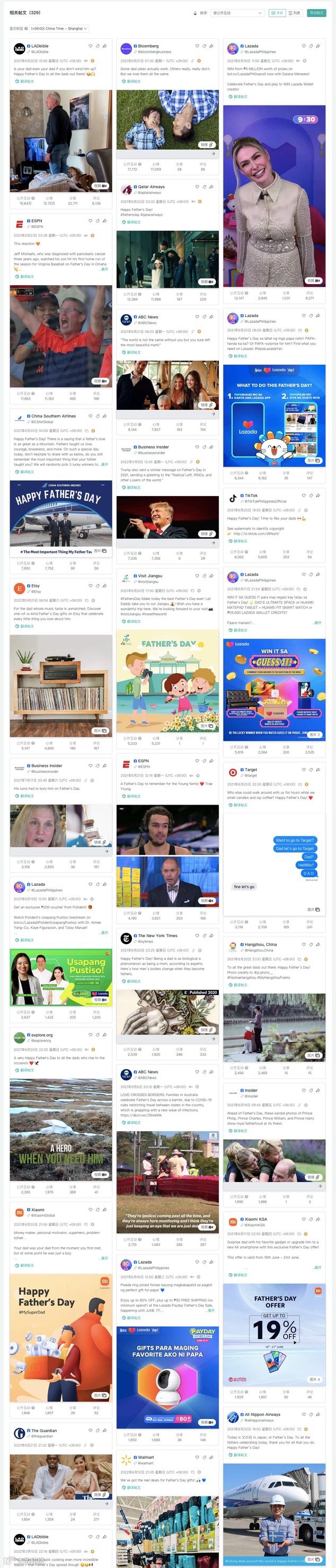 以即将到来的父亲节为例,这个重要的节日经常会有品牌筹划相关内容在社交媒体展现,作为品牌运营方,习惯上会先看看社交媒体上有关父亲节有什么好的内容,以及其他品牌发布过的父亲节帖文,加以学习和借鉴。