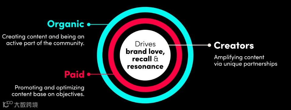 始终参与就是将“TikTok原生内容+付费推广内容+创作者合作内容”,三者有机地整合在一起,并在平台上充分地曝光,从三个方面来调动用户的参与。