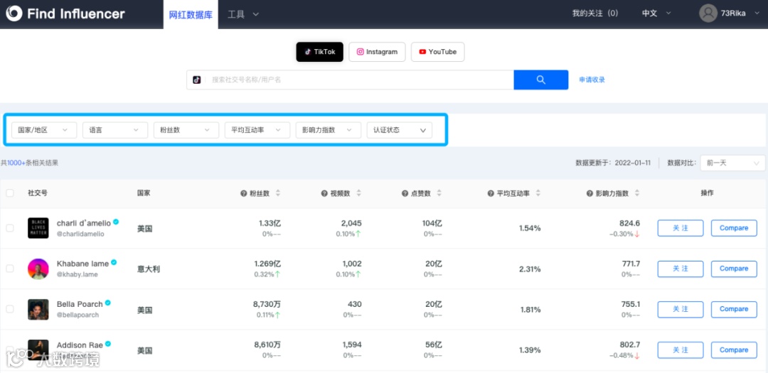 TCM上的创作者需要自己提交申请,加入TCM平台才会被搜索到并建立联系。因此如果品牌想要了解一些还未与TCM平台签约的创作者,可以通过FindInfluencer这款工具进行进一步的搜索。