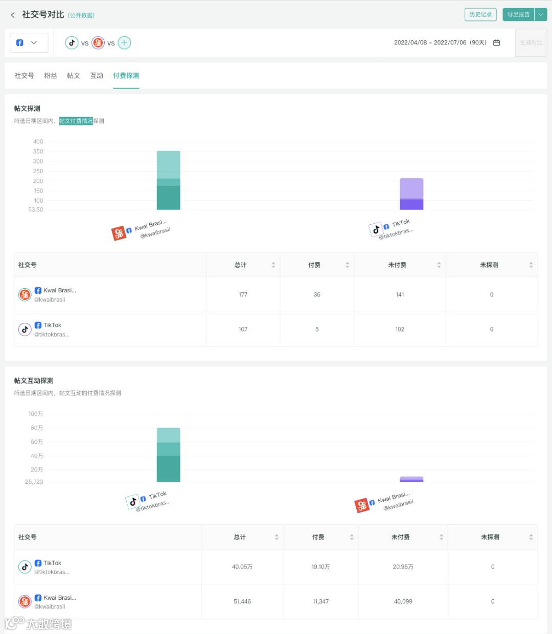 付费探测结果显示,Kwai对更多帖文进行了付费推广,但从成效来看,TikTok表现更好。