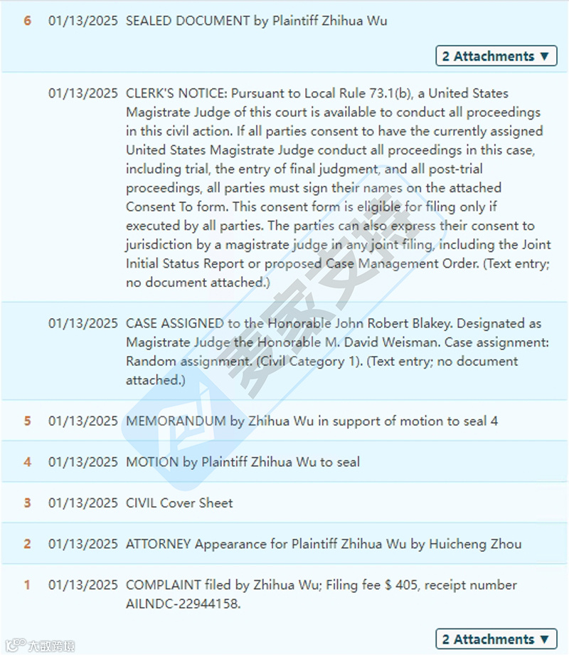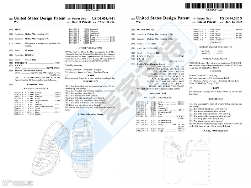 本案是Alioth律所代理国人卖家Zhihua Wu发起的密封专利维权案件,目前案件处于密封状态,但麦家支持通过检索发现,Zhihua Wu在美国共注册有D1024494鞋子和D954502水壶两个专利,下证时间分别为:2024年4月30日和2022年6月14日,跨境卖家在选品时应注意规避。关于本次案件,麦家支持通过各大跨境电商平台检索发现,涉及D1024494专利的劳保鞋概率更大,目前该案件处于前期立案阶段,暂未TRO冻结,以供卖家参考排查!