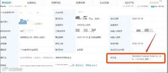 公司的全称:是在公司注册文件中注明的名称,请用英语填写这一栏。(可以参考企查查上的英文名)