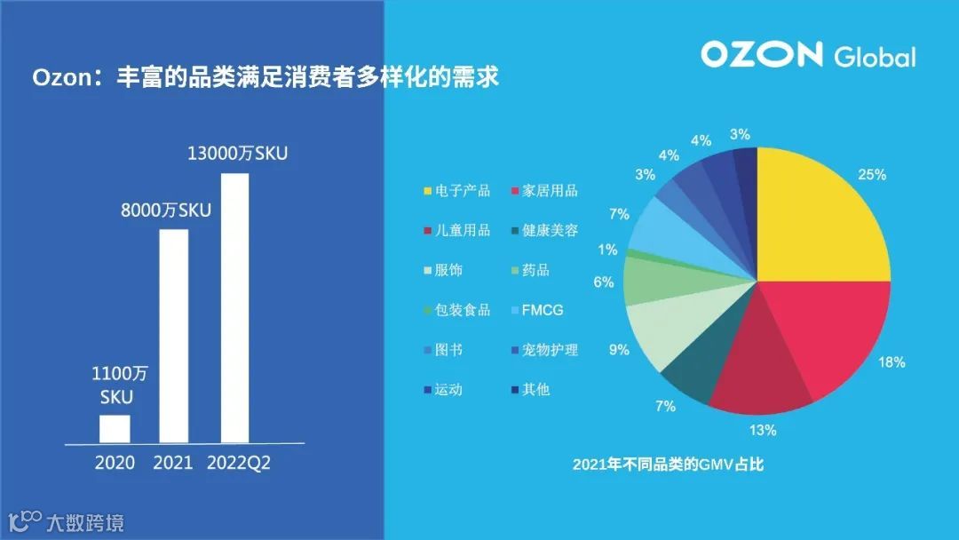 据官方数据公布,OZON在2022年的快速发展下,SKU数量已经达到了惊人的1.3亿。这其中,电子产品是最受欢迎的商品之一,占据了百分之25的比例,反映了俄罗斯市场对数字化生活方式的不断追求和需求。除了电子产品,OZON还提供了各种各样的商品,包括家居用品、儿童用品、健康美容用品等,涵盖了几乎所有消费者的需求。