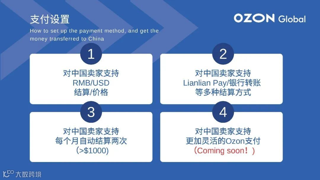 Ozon目前不支持使用国内银行卡收款,因此需要您自行注册第三方收款账户。您可选择lianlianpay、Pingpong、Wordfist万里汇Payoneer等。