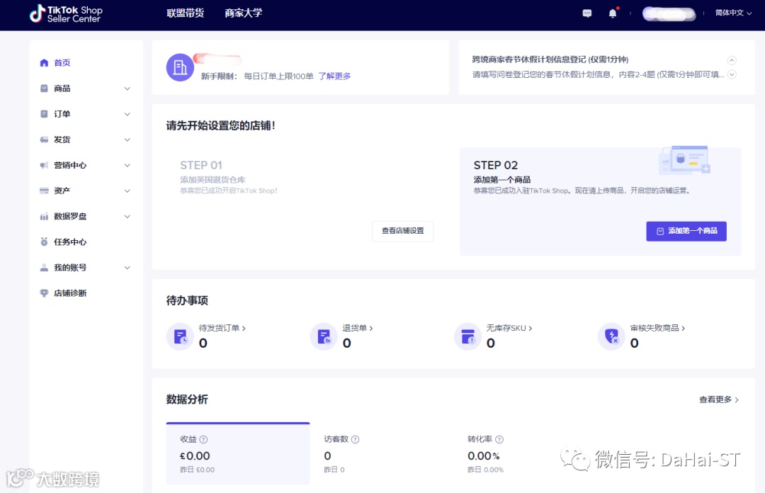 - 不同国家有所不同,具体上限商家可在平台直接查看。目前跨境为100单/天,英国本地商家为50单/天。