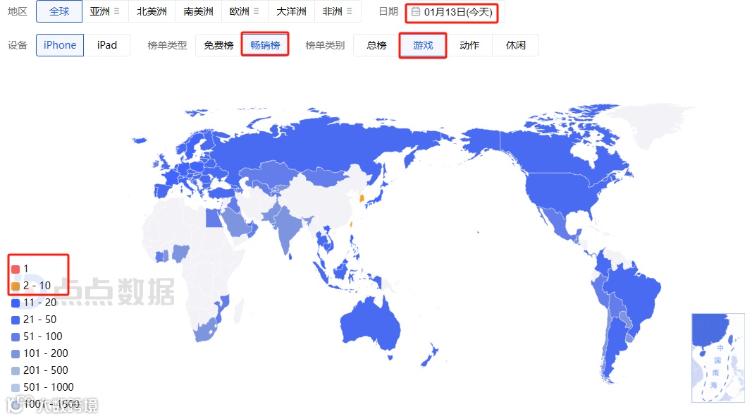 当前(1月13日),《Archero 2》已经登陆170多个国家及地区,位于43个区域市场iOS游戏免费榜TOP20,23个区域市场畅销榜TOP20(韩国第7、中国台湾第6、新加坡第11)。