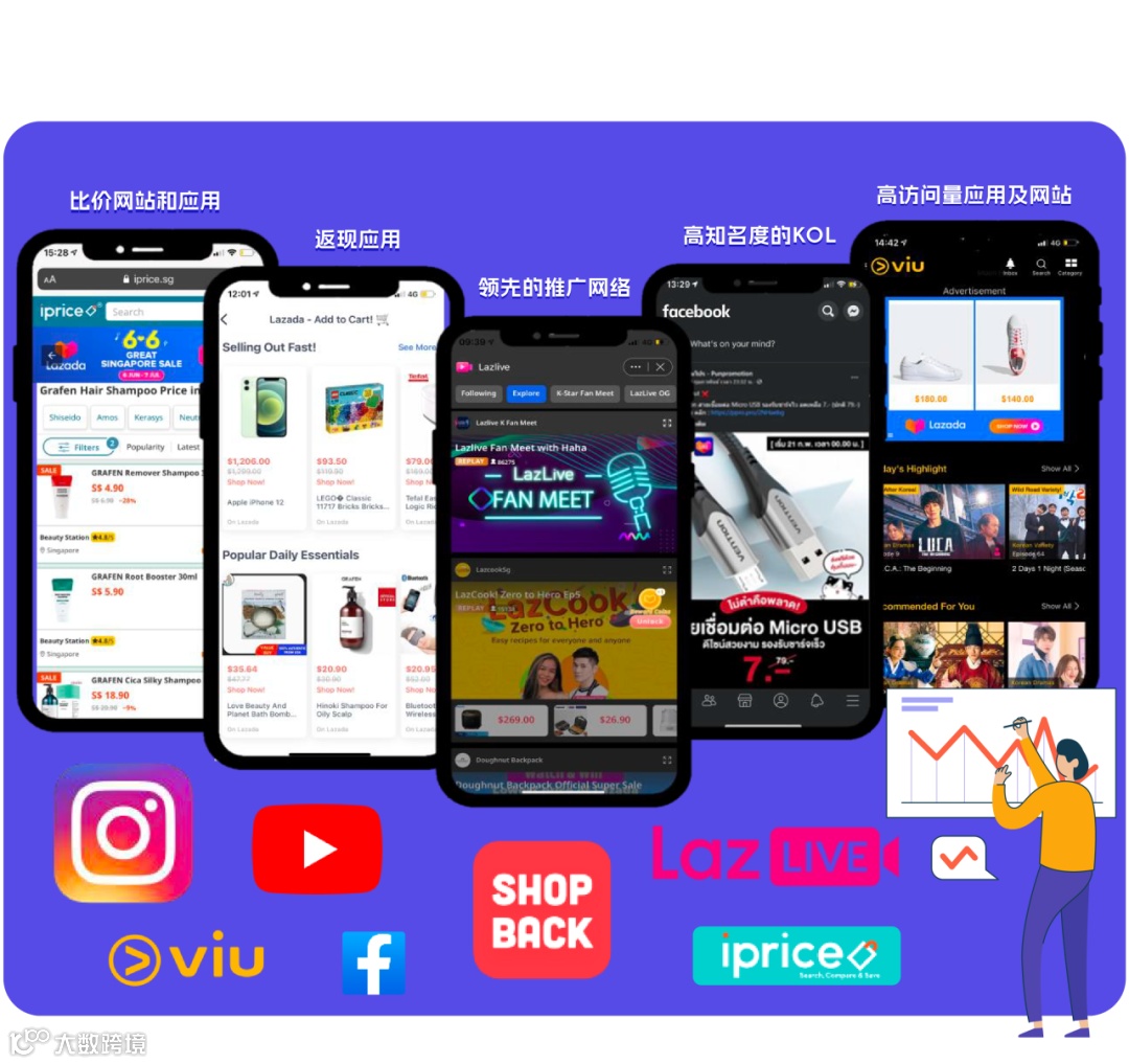 因此,Lazada为帮助商家获取站外的庞大用户流量,设置了“超级联盟”这一广告工具,借助31000+的Lazada联盟营销伙伴,充分利用泛网络营销优势,与高知名度的KOL、比价网站、热门APP及网站等实现站外的展示与推广合作,进一步帮助商家提高品牌知名度和店铺流量。