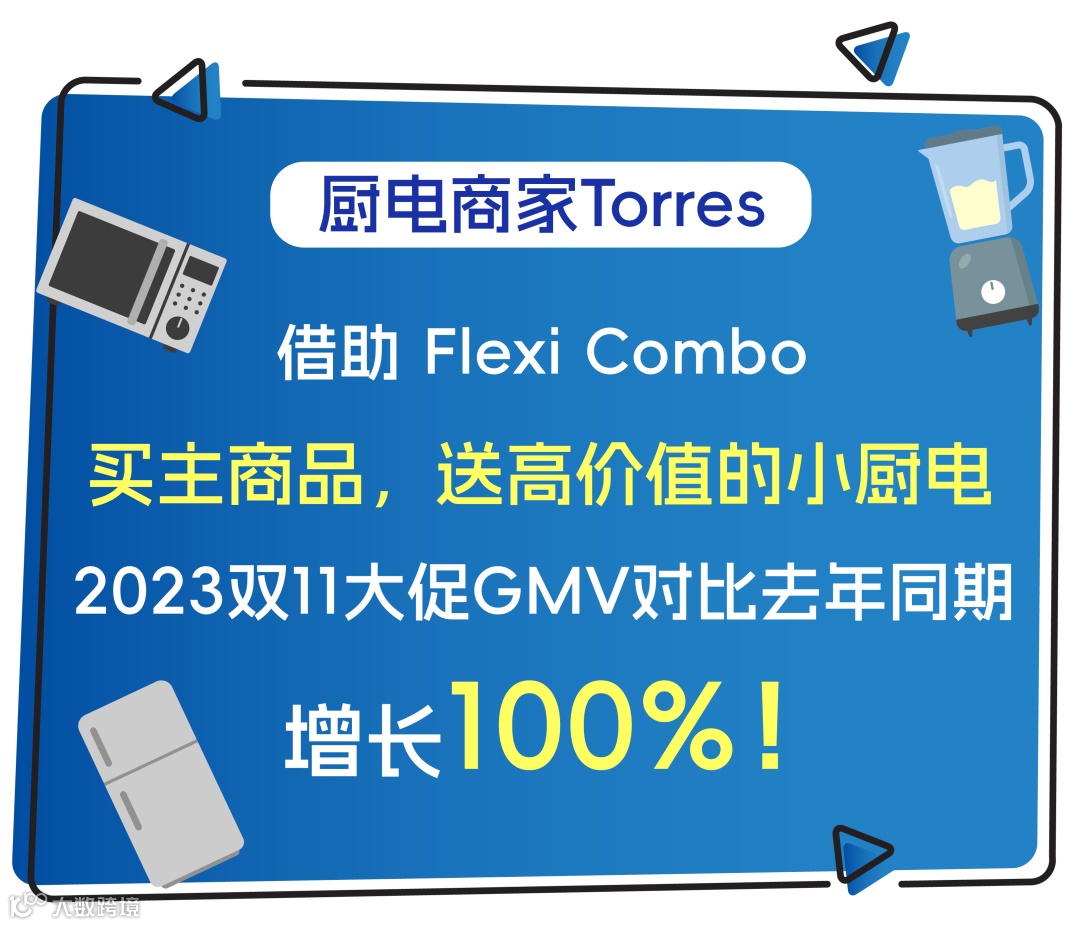 “Flexi Combo可谓是敲开GMV增长大门最后一块砖。”Torres所管理的厨电品牌店铺,在大促前一周就已经加大推广投放,营造大促氛围。同时在宣传页面上,也会预热消费者活动权益,积累加购。