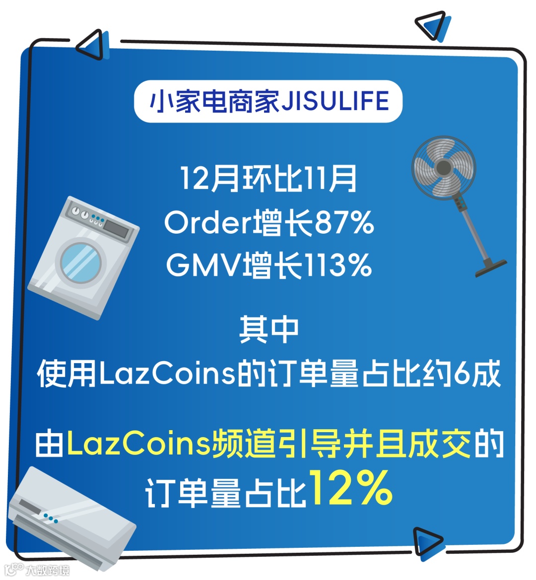“没有人会拒绝动动手指就能获得的真金白银的优惠抵扣”,这是小家电商家JISULIFE对LazCoins活动的评价。