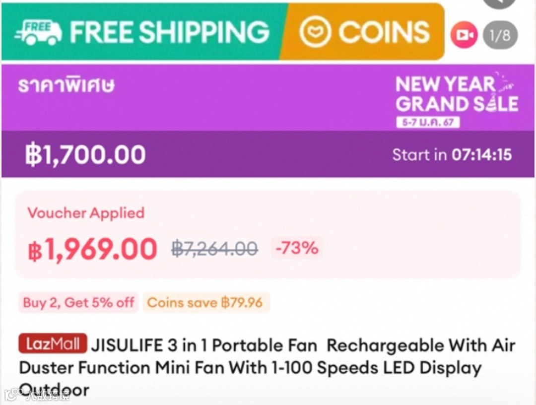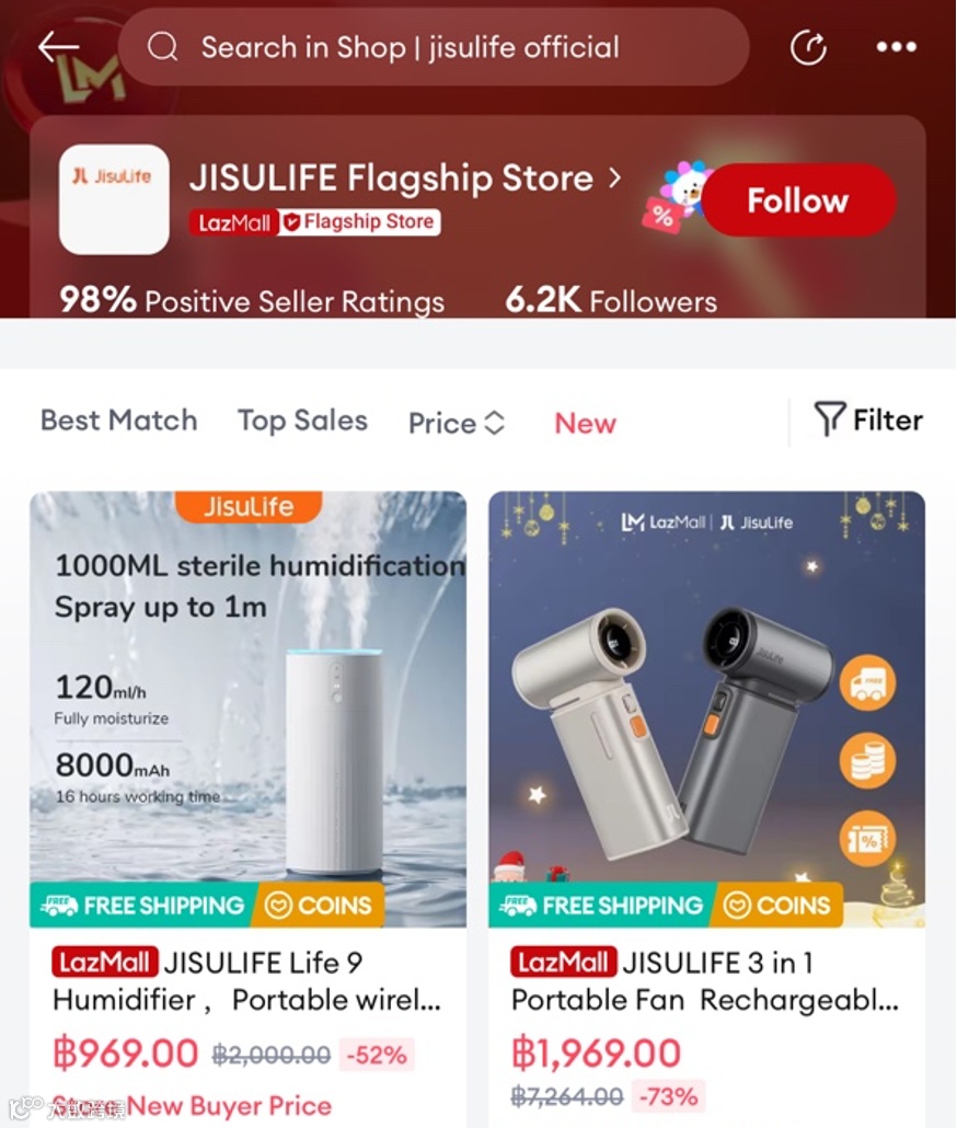 和其他家电商品相似,便捷风扇作为东南亚最常用小家电之一,全年销售波动不大,如何在大促期增加曝光和转化是提升品牌影响力的关键。迷你风扇商家JISULIFE在LazCoins活动中,设置原售价3%-4%的金币抵扣,借助多站点LazCoins页面的商品展示提升曝光,快速促进成交。12月销售额对比11月环比增长113%,其中由LazCoins频道引导并且成交的订单量占比12%。