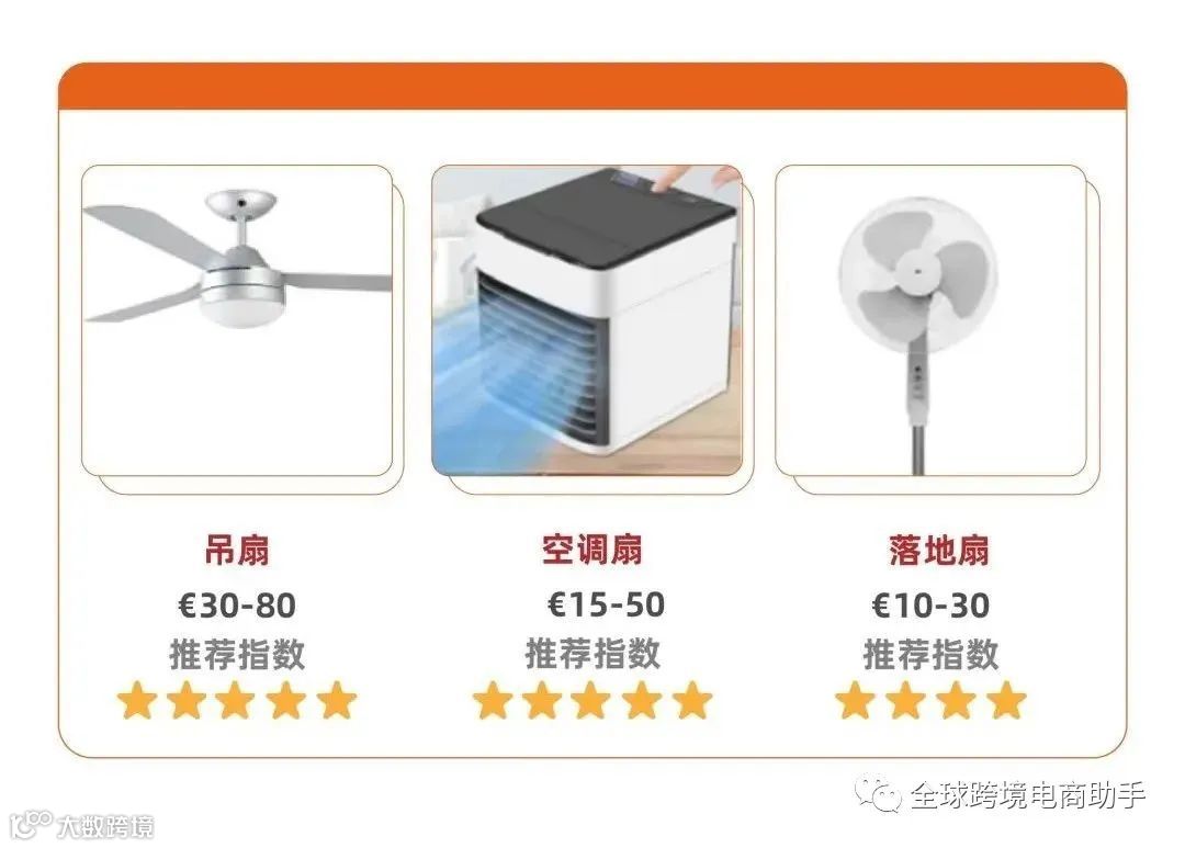 而家装用品方面,也因为持续的高温和高昂的能源费用,使得西班牙消费者更愿意选择节能、性价比高以及多功能实用性强的产品。比如,太阳能家装和节能空调的需求量均同比上涨了25%。落地扇、空调扇、台扇等整体交易额增速同比增长188%。