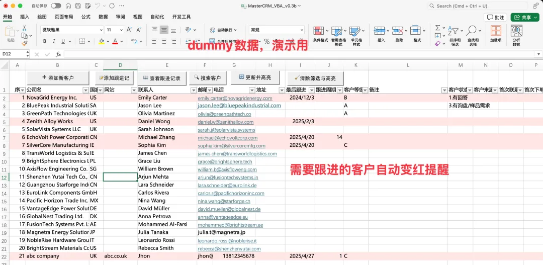 既然你是外贸人,那我送个小工具——MasterCRM VBA。适合单人使用的客户管理工具。