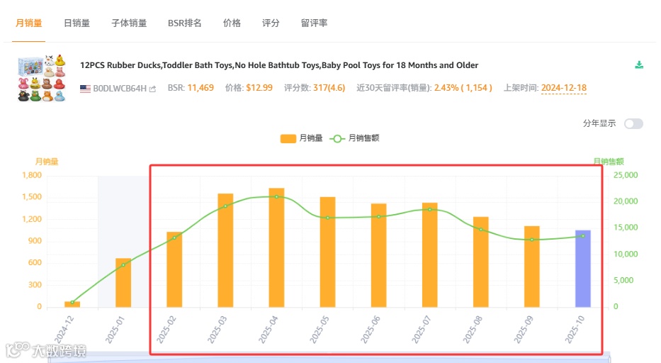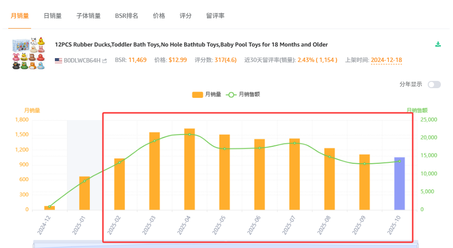 昨天的文章《前10天已售1000+,这款恐怖小黄鸭10月能卖1W+吗?》分享的是一款万圣节小黄鸭产品,从历史数据我们可以看到,该品只在每年的9月和10月热卖,其它时间的销量跌到地板。