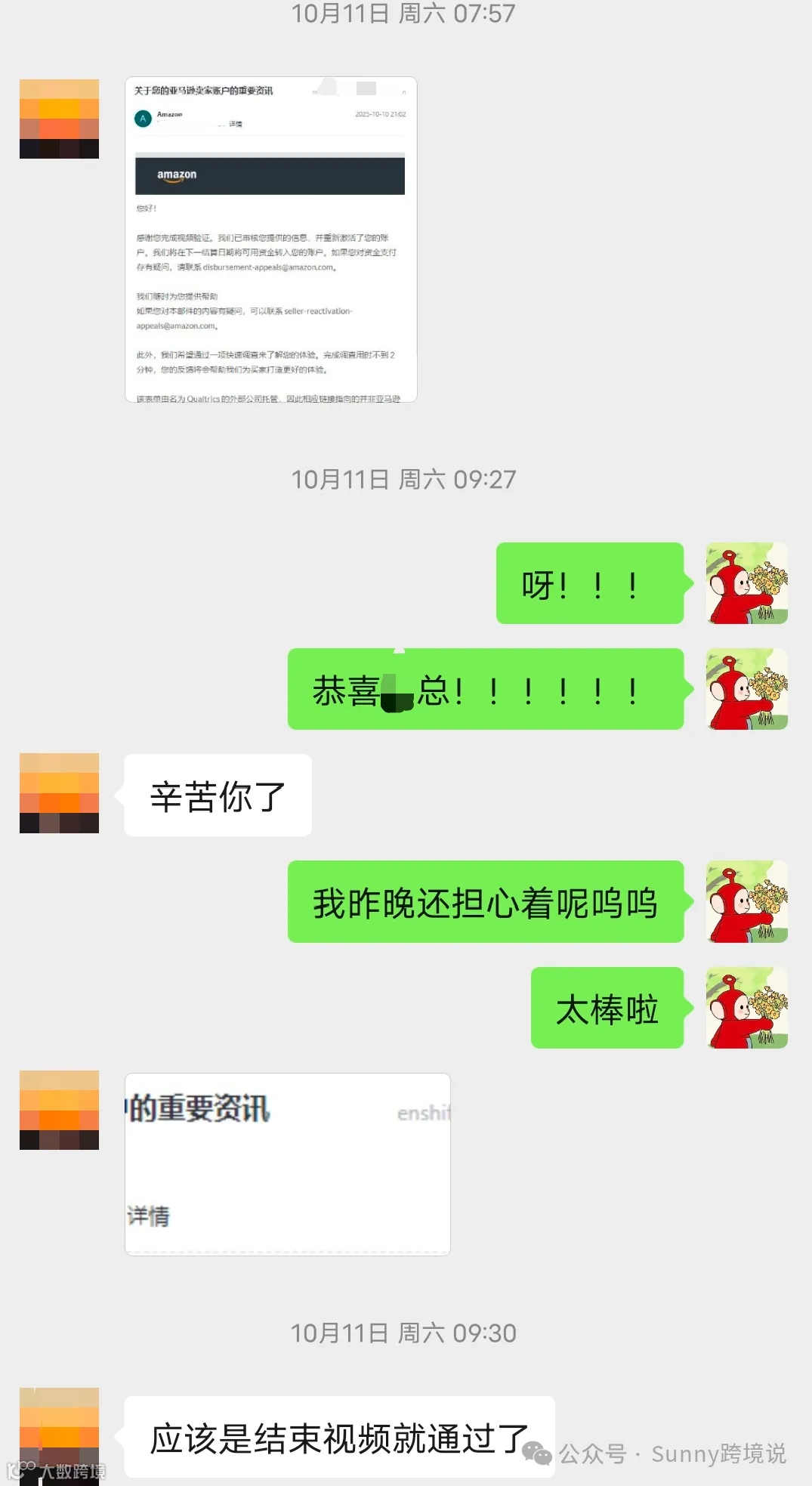 3、9月17日通过 “ Sunny跨境说 ” 公众号联系到我,大概聊了一下具体情况,以及法人的基本情况。
