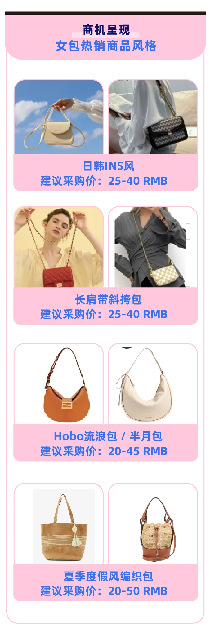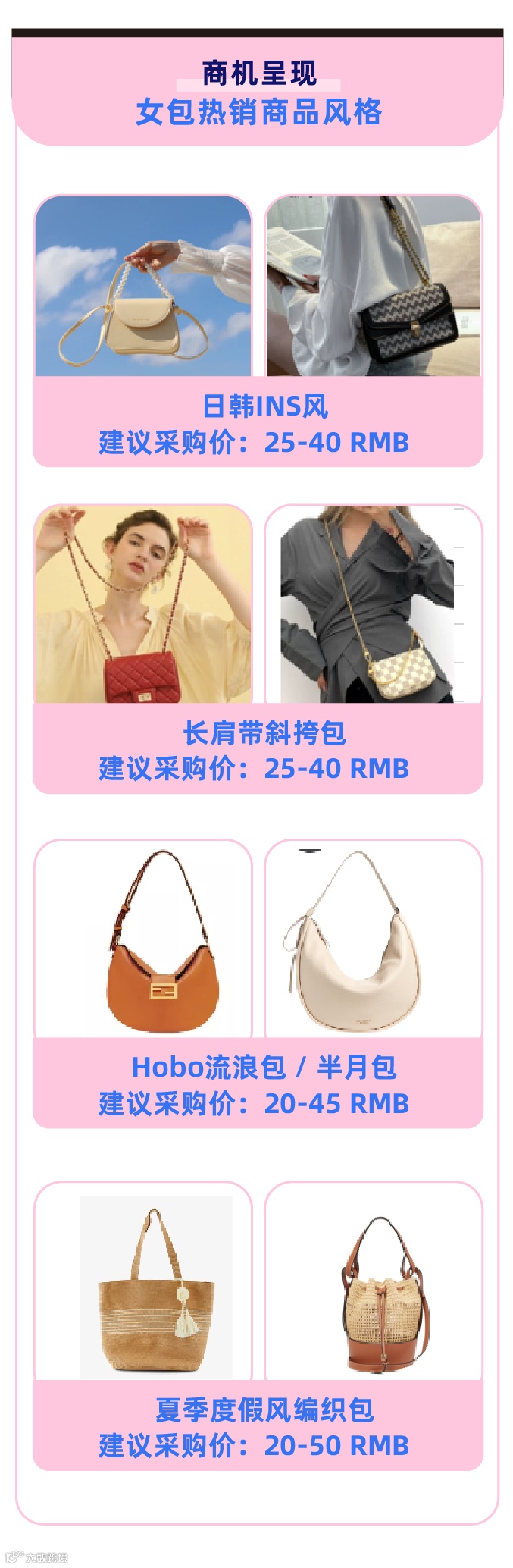 社媒流行风向很大程度决策了东南亚女性对于服饰穿搭的消费,女包也不例外。Instagram风格日韩精致小包、长肩带斜挎包以百搭、轻便通勤等特性,在东南亚各站点深受消费者喜爱。在社交媒体出游风潮的推动下,夏季度假风编制包的畅销便也是理所当然,特别在泰国和马来西亚等东南亚热门的旅游城市,编织款女式包尤为受欢迎。
