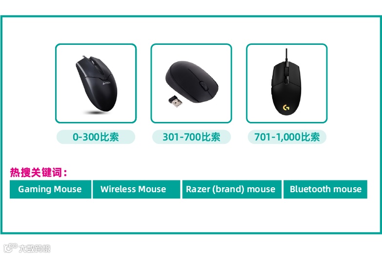 与高科技键盘一样,符合人体工学设计的有线和无线鼠标受到越来越多消费者的喜爱。对于游戏玩家来说,设备的 DPI (鼠标DPI是指鼠标的定位精度)成为衡量鼠标质量的关键指标,而速度和舒适度是消费者最关心的属性。此外商家面向不同的消费者群,也推出了更多的产品,例如适合手掌纤细的女性的电竞鼠标。