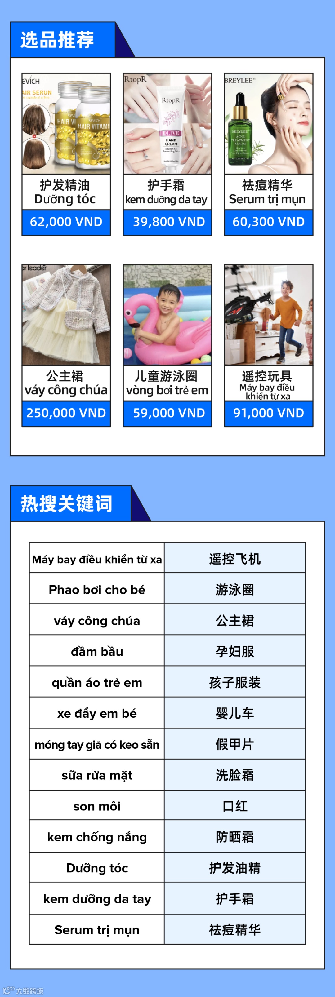 越南选品看这里!越南跨境电商市场逐步复暖,对于商家而言,即将到来的妇女节以及Bday大促日又是不容错过的爆单风口。如何找准热卖风向标,越南站点又有哪些热搜的关键词可供运营以及备货参考,一文尽知。