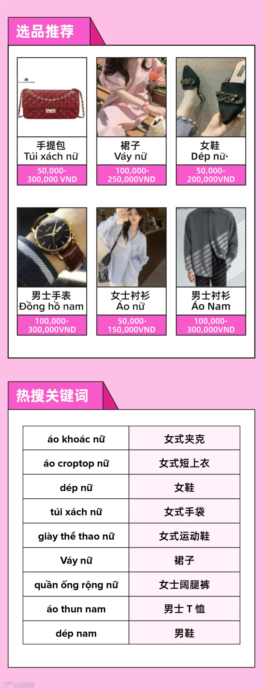 妇女节临近,女装、女士鞋包的搜索量逐渐攀升。在越南,夹克、长裙以及运动装都颇受当地女性消费者喜爱。而且在韩流文化的影响下,越南女性也会倾向于购买主流综艺节目、电视剧的女星同款。