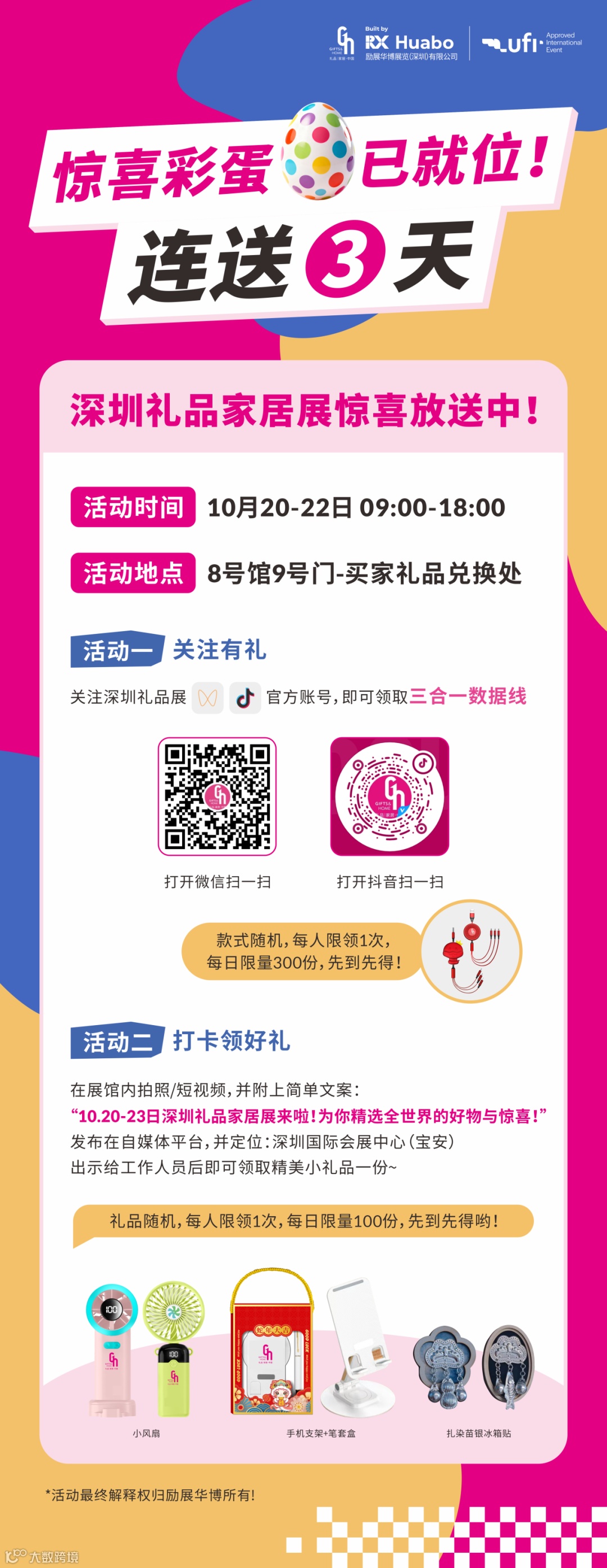 关注励展华博官方视频号、抖音号或现场拍照、拍短视频,就送好礼。