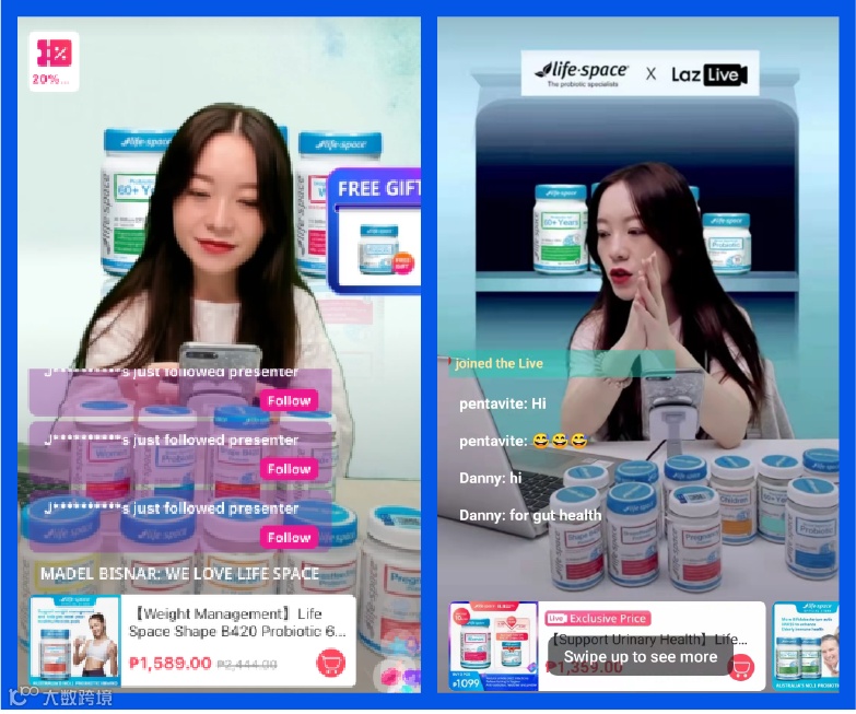 如今,边看边买的电商形式从国内火到东南亚,Life-Space也深悉直播带货模式对于品牌增长的价值,平均每月在LazLive直播直播10场以上,9.9大促,菲律宾站点直播观看人次超过2万。除了在直播间分享店铺优惠,Life-Space还通过健康学KOL讲解科普健康轻知识,科学的解释自身益生菌产品各个菌株的效用,实现更为有效的“种草”,培养更多品牌的粉丝,保持店铺在平台的关注热度
