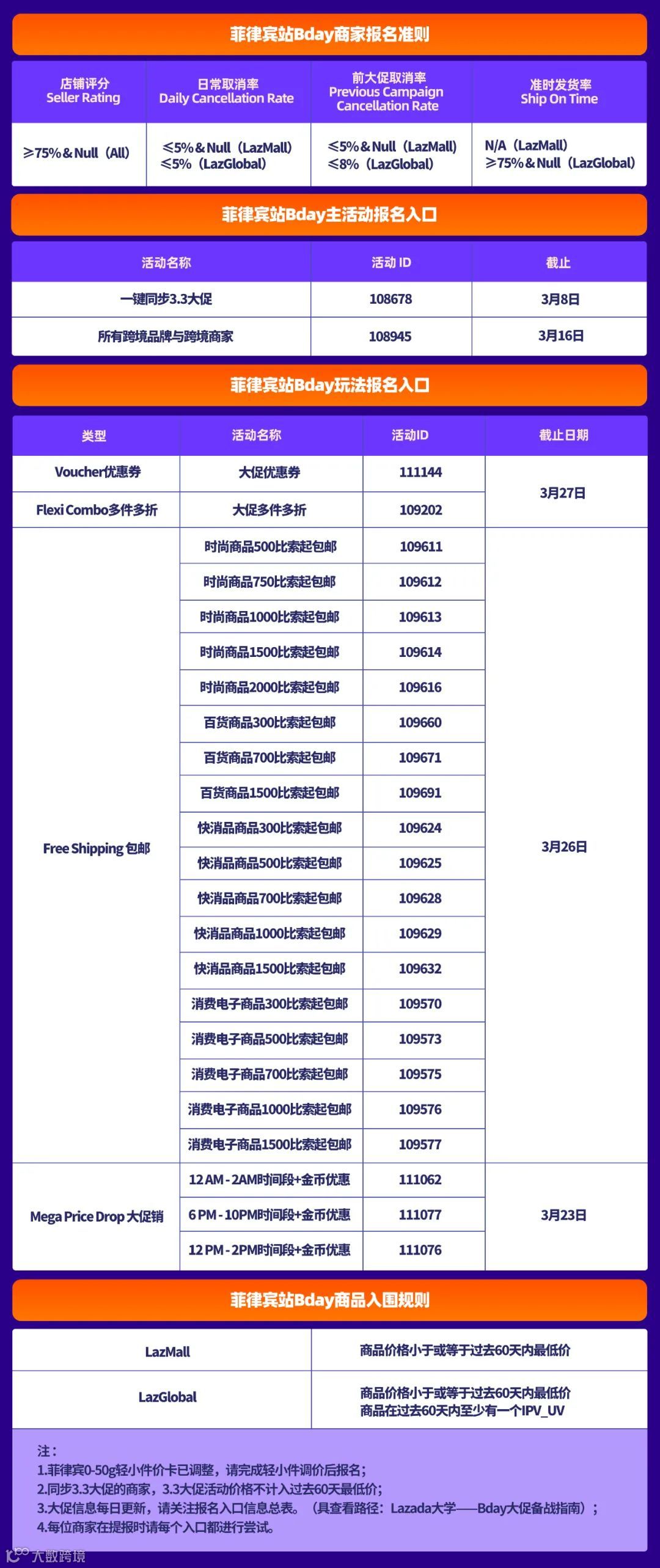 本次Bday大促菲律宾站暂无Lazada Bonus玩法,但菲律宾包邮项目——Free Shipping Max已在3月4日开始报名。