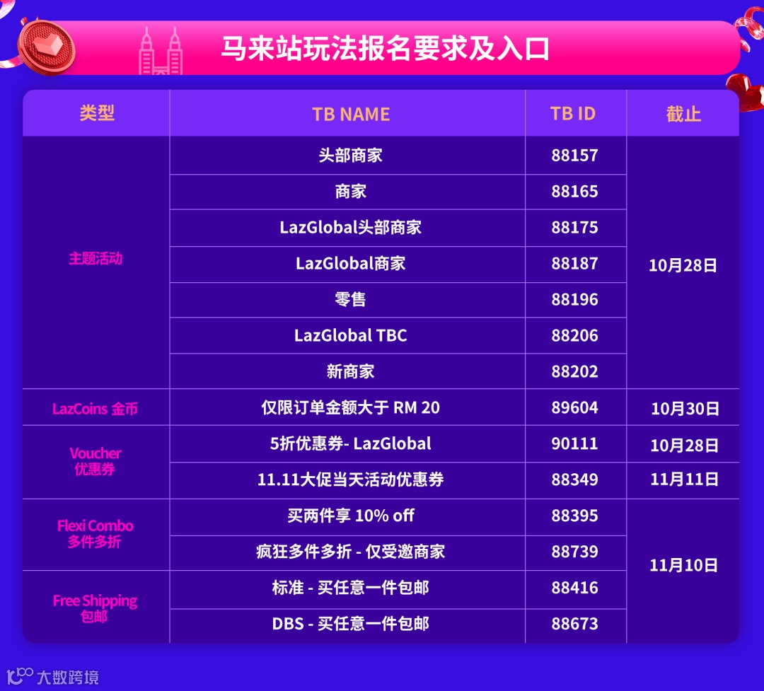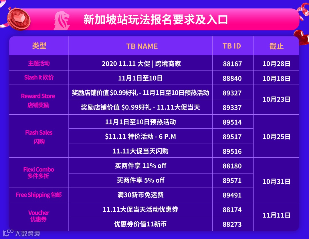 线上拼精力,线下拼体力。距离双十一还剩22天,狂欢将至, 各位sir稳住,我们能赢!为了帮助商家更好的备战,小编整理了一份六国报名攻略,让你通关双十一,一手硬核看点,小编带你先睹为快!