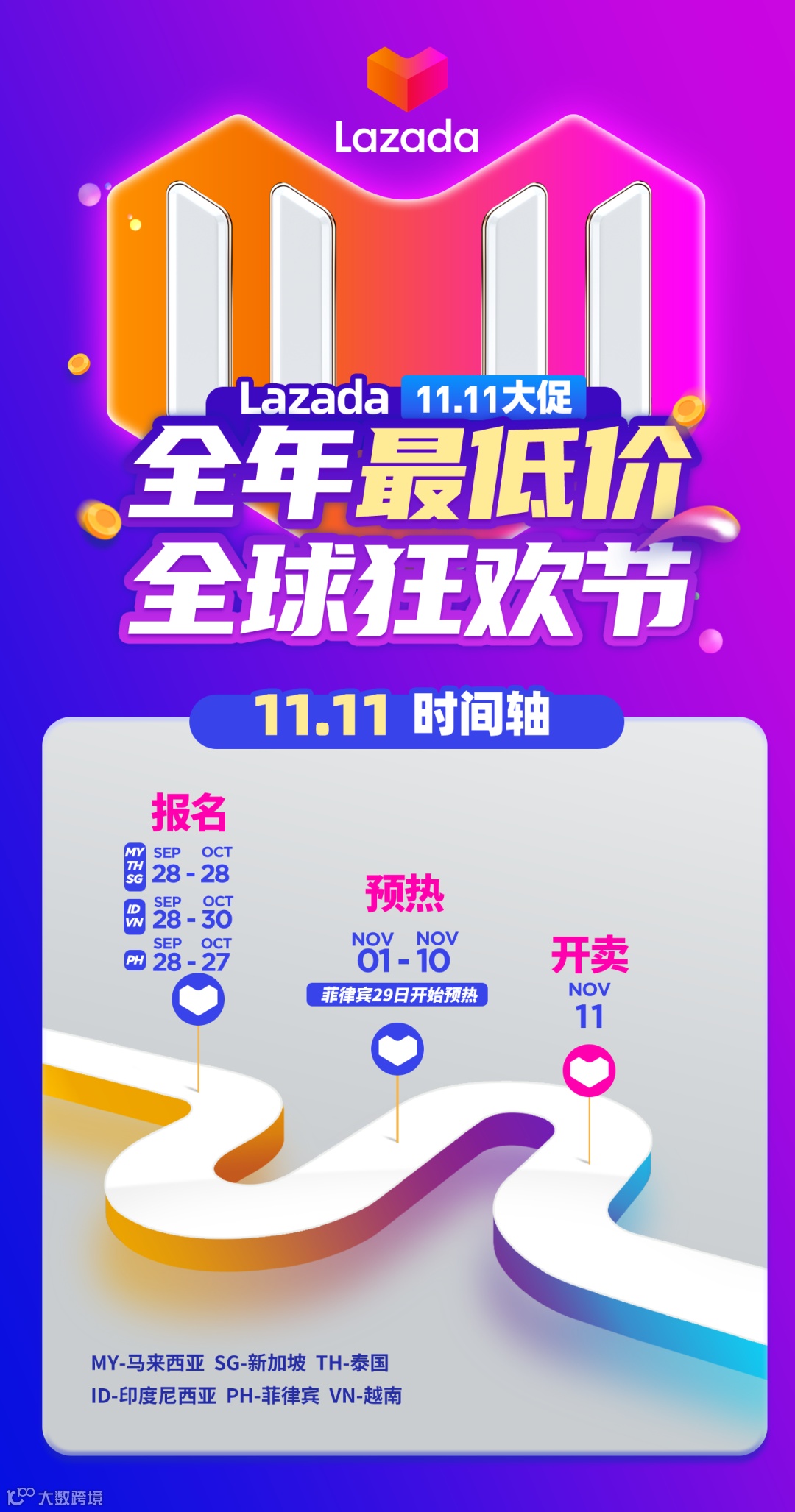 大促报名火热进行中,新的爆单机会就在眼前!以上就是双十一的报名时间和玩法介绍了,想要了解双十一更多信息?Lazada 大学已上线双十一专属页面,最新动态持续更新,精彩内容一网打尽!