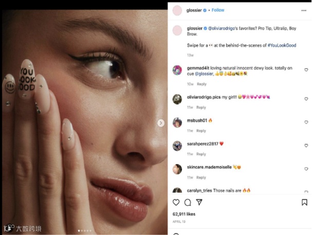 Glossier聘请Z世代喜爱的歌手Olivia Rodrigo作为品牌大使,并积极改善种族多元性议题,重塑品牌形象。