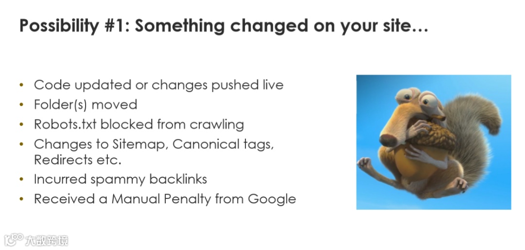 如果网站排名流量下降不是外因导致,那么需要跟技术团队沟通分析是否因为内部的某个技术操作对网站产生了负面影响,建议分析的要点包括: