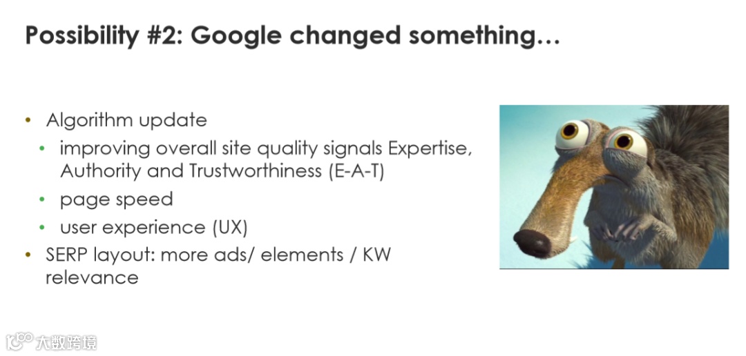 谷歌更新最常见的是谷歌算法更新,对排名的影响波动较大。另外还可能是SERP 展示的变动,这对排名的影响幅度相对较小。