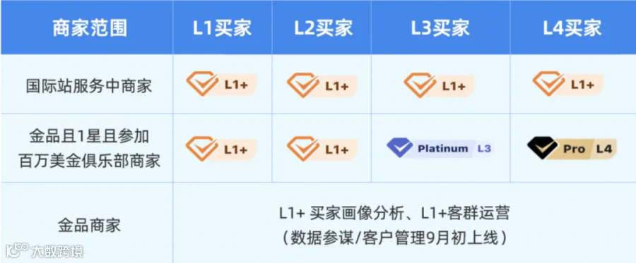 - L4:金标买家,alibaba.com单财年订单超30万美元或年收入超百万美元企业