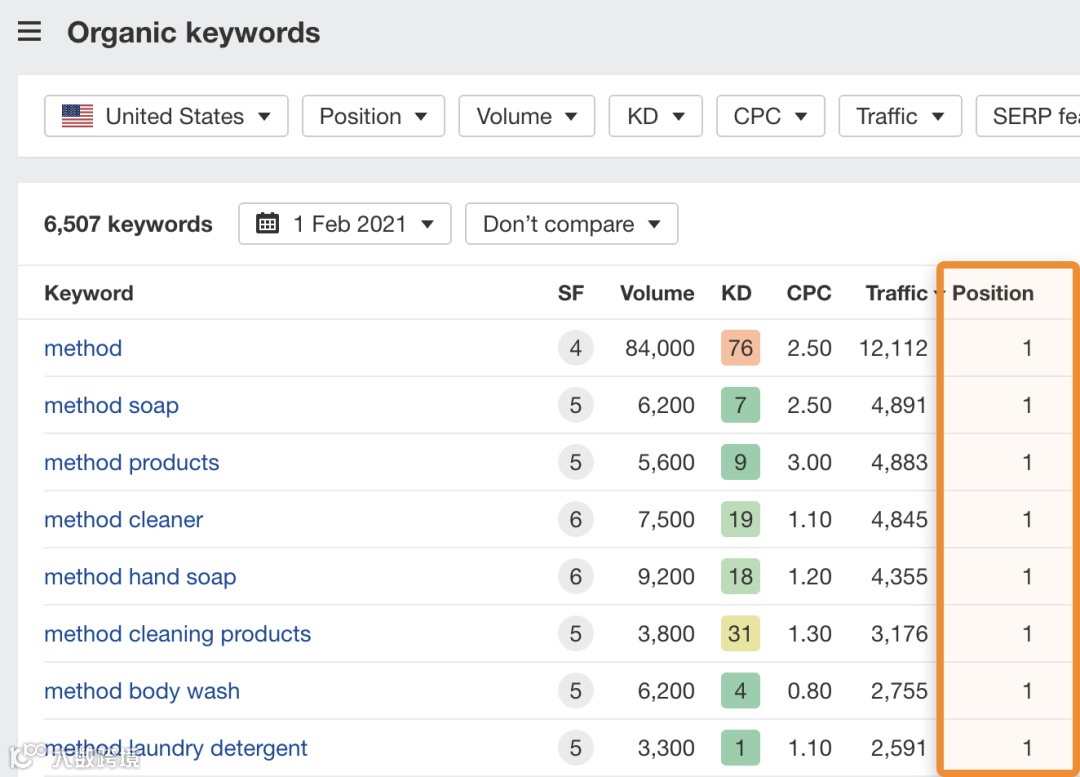 Method的网站稀疏,几乎没有任何内容,但它们在搜索方面的表现仍然非常出色。根据Ahrefs的网站分析,他们在美国的网站[2]每月平均从搜索引擎获得的访问量超过8万次。