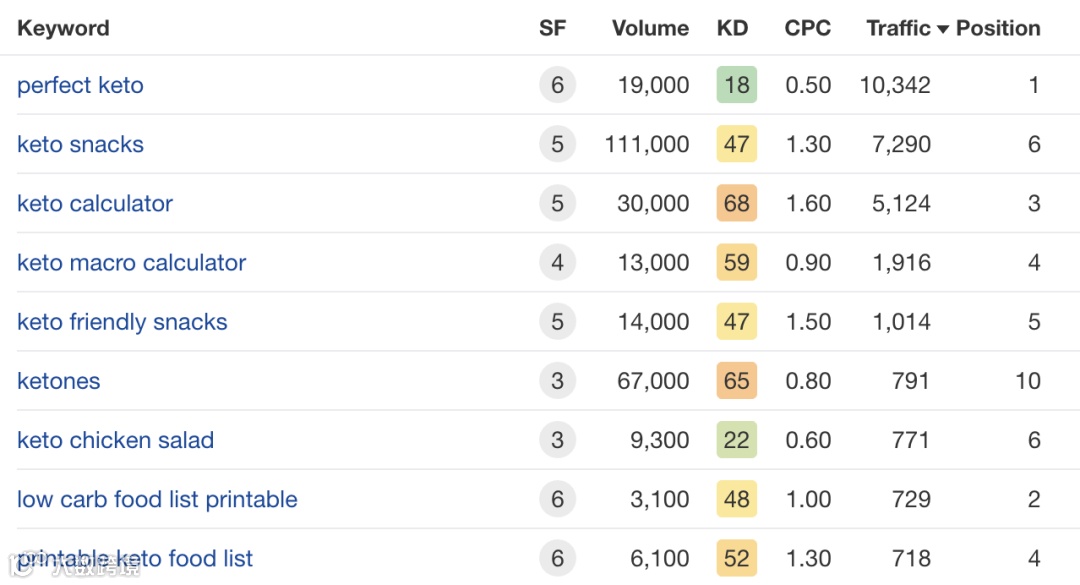Perfect Keto 的客户绝大多数是那些已经知道生酮饮食的人,他们并正在搜索像“ Keto 零食”这样的东西,这个词每个月会发送大约7000人到他们的网站。