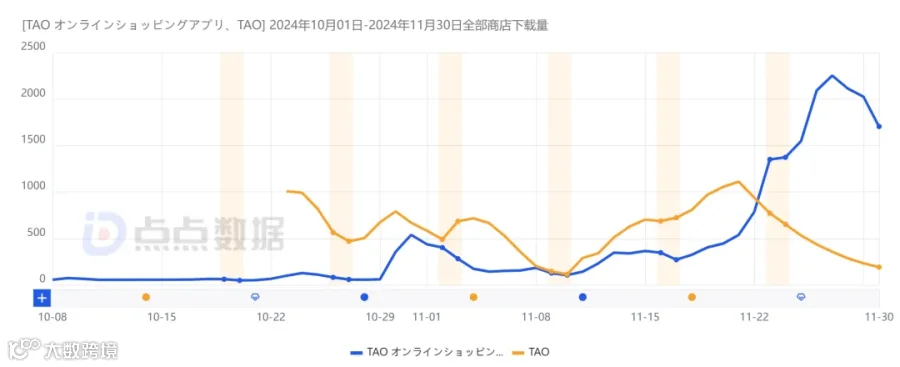 根据点点数据统计,截止到11月底,该应用已在日本地区双平台取得超过4.6万的下载量。
