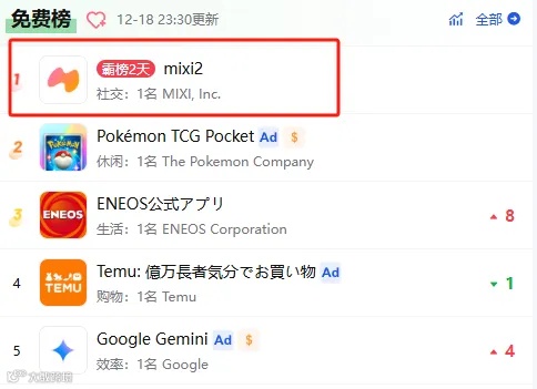 日本本土社媒复兴,「mix2」登上日本 iOS 下载总榜 Top1。「mix2」是一款类X的社交平台,由日本本土厂商 MIXI Inc 打造。MIXI Inc 是本世纪初日本国民级社交平台「mix」的打造者,这款应用巅峰时期在日本有高达 1500 万日活,此后由于「X」、「FaceBook」、「Line」的流行而逐渐落寞。