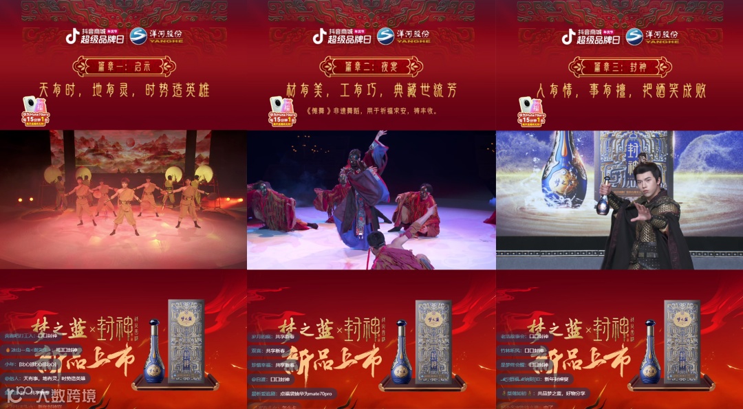 1月12日,承接贺岁片《封神第二部:战火西岐2》上映热点,洋河推出了“洋河梦之蓝封神版”,把新品发布会直接搬到了直播间。