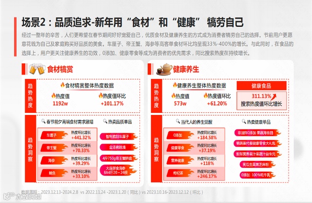 而随着消费者健康消费意识的提升,年货节与健康相关的产品和食品销售占比有了明显提升。