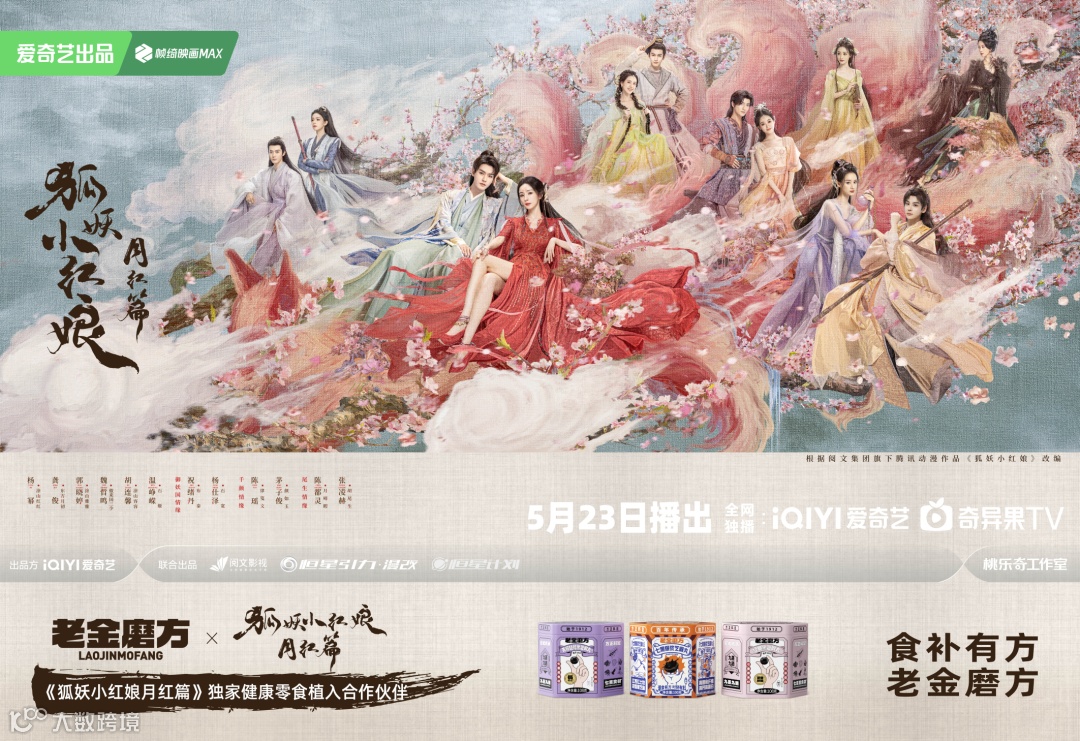近年来,老金磨方签约孟子义、王心凌等热门明星为代言人,成为《狐妖小红娘月红篇》等热播剧的独家健康零食合作伙伴,并通过跨界联名、IP合作及达人推广等方式,将轻滋补理念和健康零食融入与年轻人沟通的内容及媒介中,与这群潮流的年轻群体为伴。