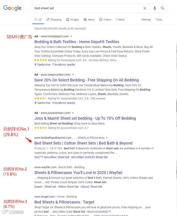 - 自然搜索流量的点击完全免费,极大降低了企业的营销成本。