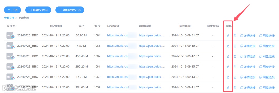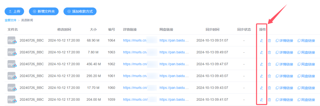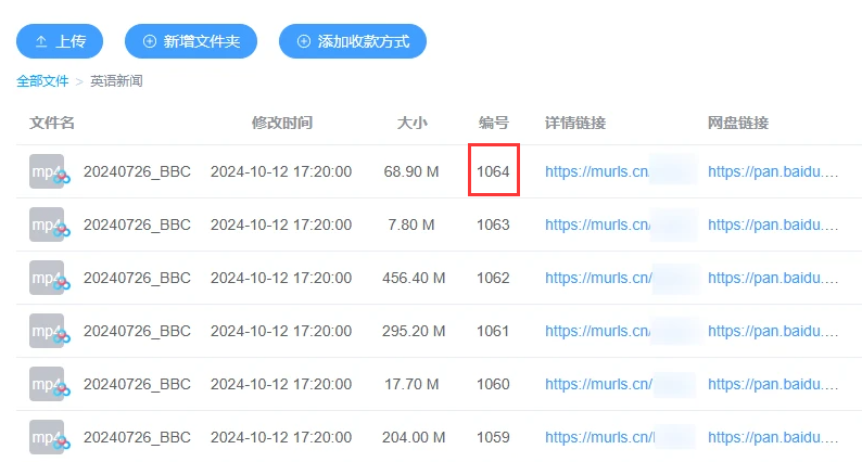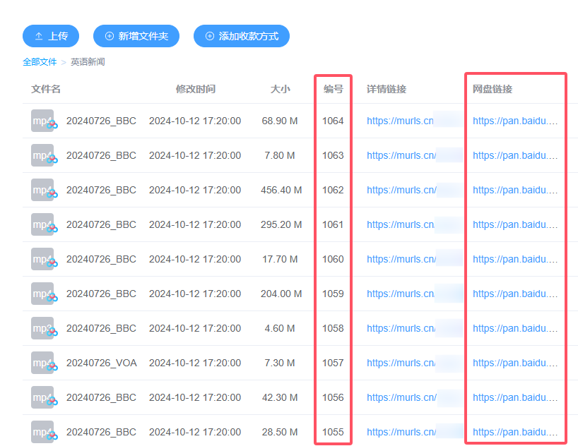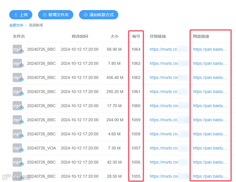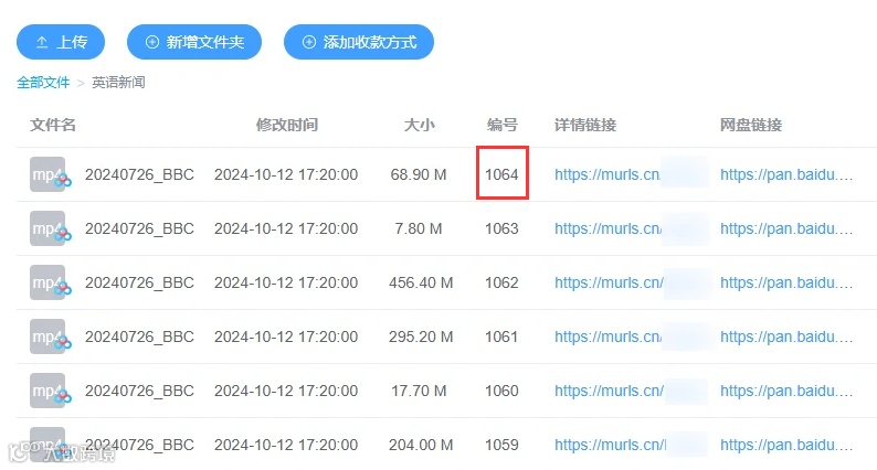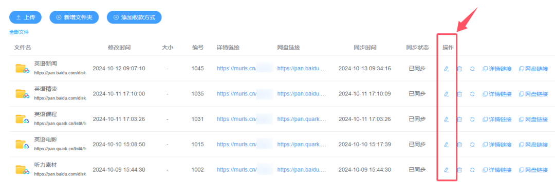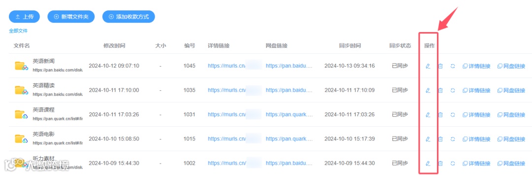第一步,同步百度/夸克网盘资料,自动生成网盘分享链接及文件编号。