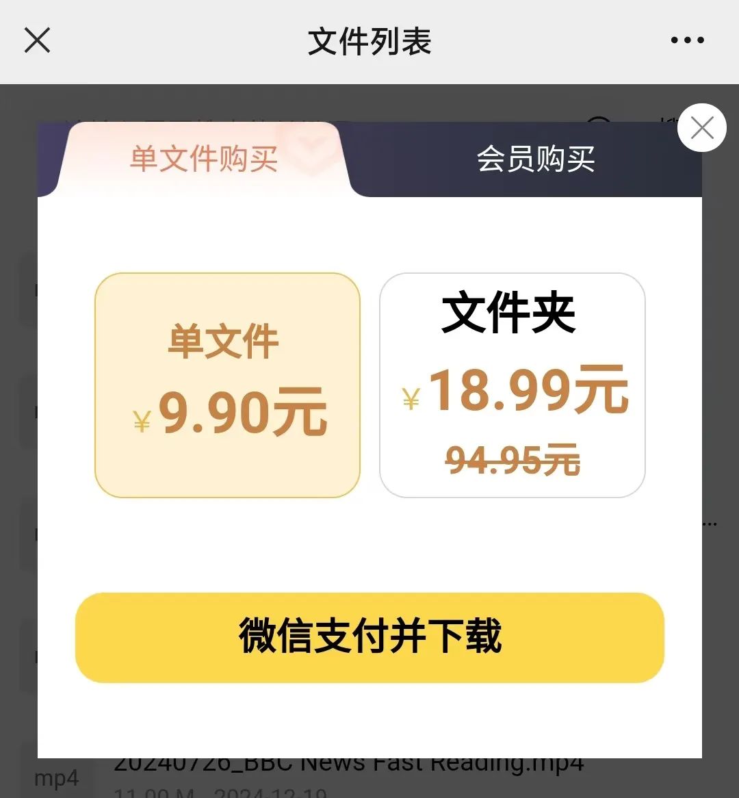 粉丝点击链接后会自动转到付费页面,可以选择购买单份文件、文件夹或会员,支付完成后就能获得学习文件。