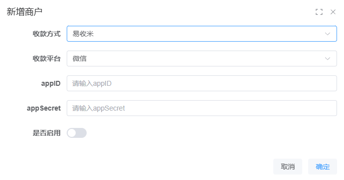 在【收款方式管理】功能设置收款方,有微信平台和易收米平台。大家按自己需求选择。具体的设置大家可以按照【帮助文档】使用指南进行操作。
