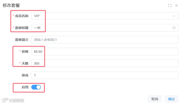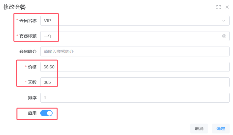 接着在【套餐管理】功能中输入相关信息,大家可以根据自己的需求进行填写。