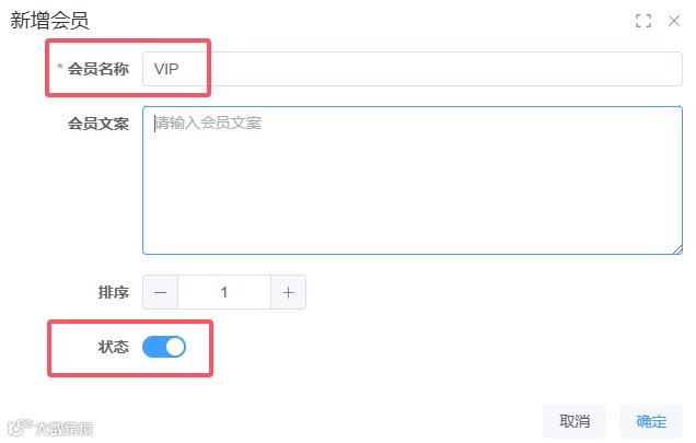 在【会员管理】功能设置会员名称,状态开启。